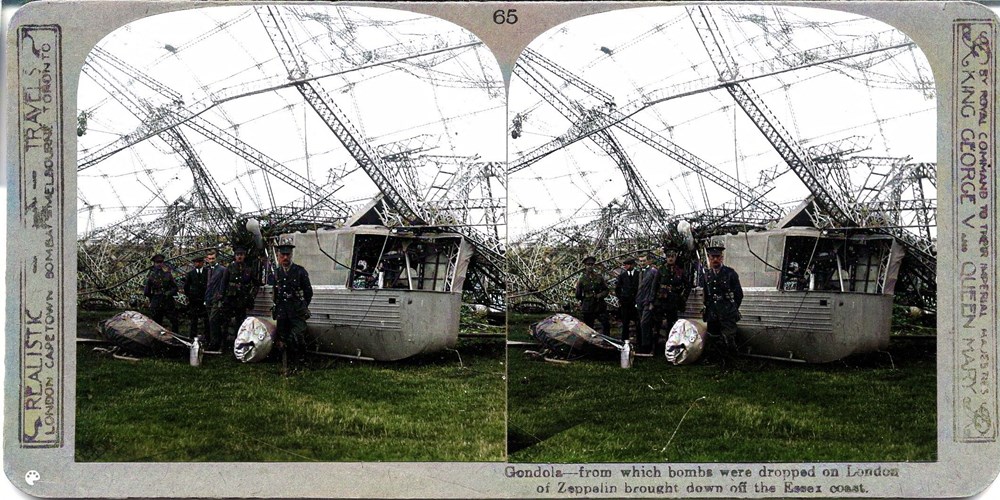 Gondola of Zeppelin raider which dropped bombs on London, brought down near the Essex coast