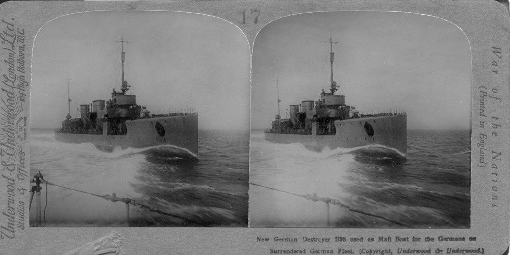 Image Id: 56 Contributor: The Jordan/Ference Collection Theatre: Post-War Subject: Surface Vessels Location: Unknown Regiment: B98 Service Arm: Navy Battle: Unknown Date: 1919 Combatants: German Publisher: Underwood & Underwood Source: British Directory: WOTNA