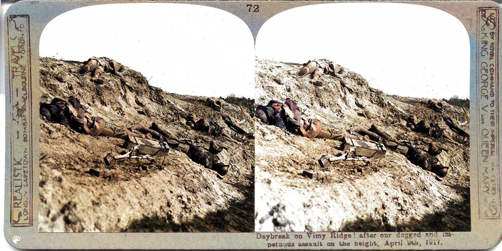Image Id: 569 Contributor: The Jordan/Ference Collection Theatre: Western Front Subject: The Front Line Location: Vimy Ridge,France Regiment: Unknown Service Arm: Infantry Battle: Vimy Ridge Date: 9th April,1917 Combatants: Canadian Publisher: Realistic Travels Source: British Directory: Set of 600 001-100