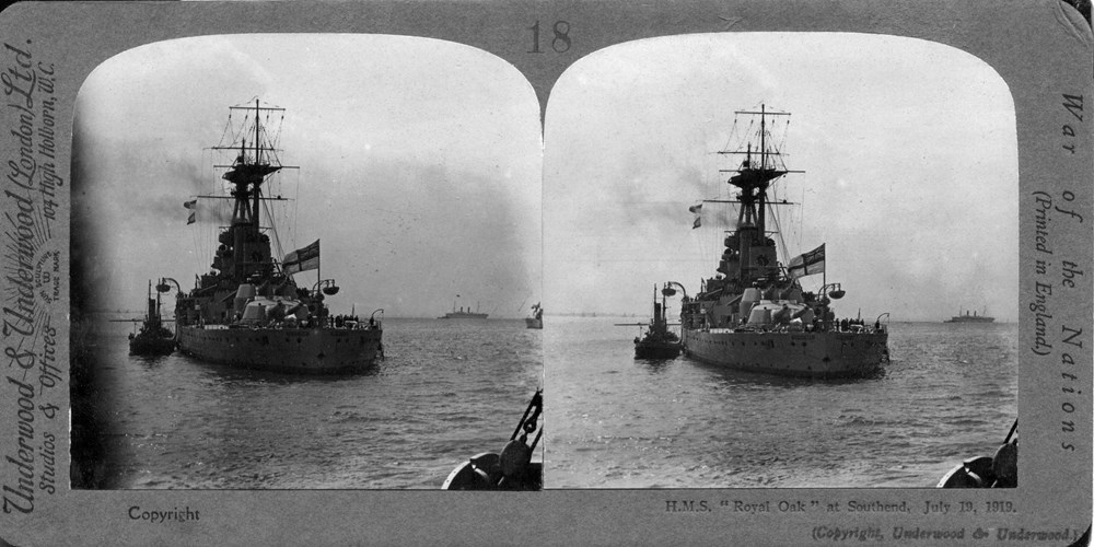 Image Id: 57 Contributor: The Jordan/Ference Collection Theatre: Post-War Subject: Surface Vessels Location: Southend Regiment: HMS Royal Oak Service Arm: Navy Battle: Unknown Date: July 1919 Combatants: British Publisher: Underwood & Underwood Source: British Directory: WOTNA