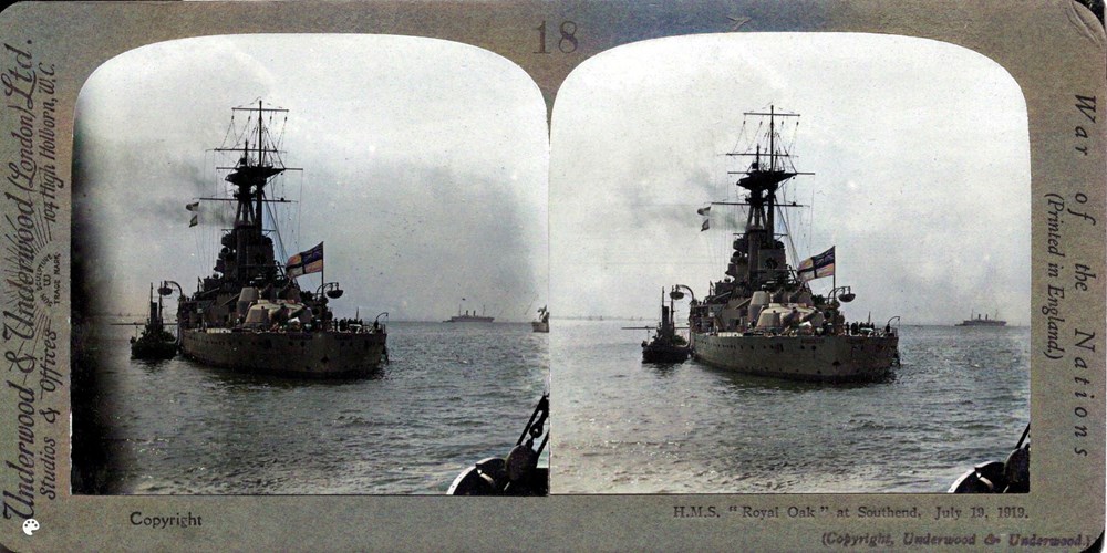 Image Id: 57 Contributor: The Jordan/Ference Collection Theatre: Post-War Subject: Surface Vessels Location: Southend Regiment: HMS Royal Oak Service Arm: Navy Battle: Unknown Date: July 1919 Combatants: British Publisher: Underwood & Underwood Source: British Directory: WOTNA
