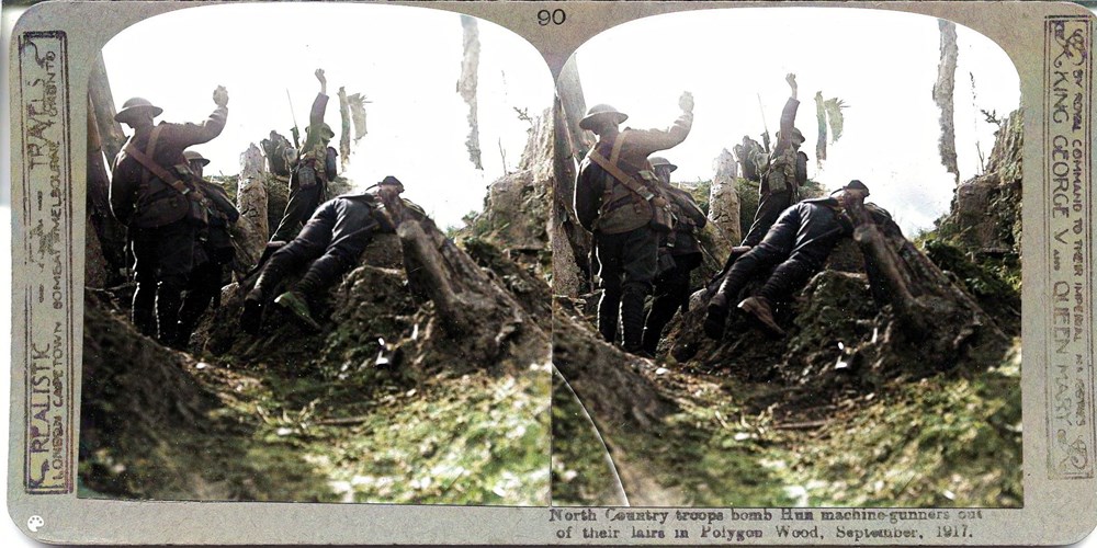 North Country troops bomb Hun machine-gunners out of their lairs in Polygon Wood, Sept., '17