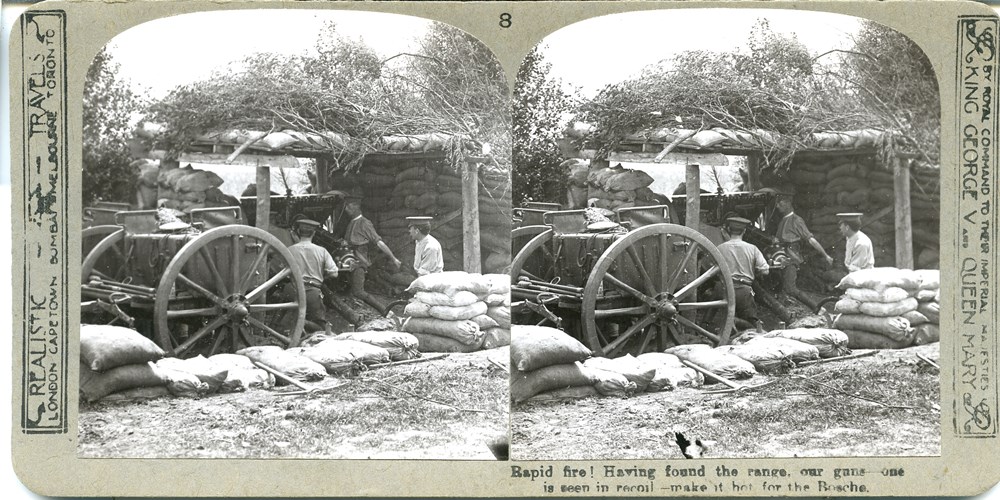 Rapid fire! Having found the range, our guns (seen in recoil) make it hot for the Bosche