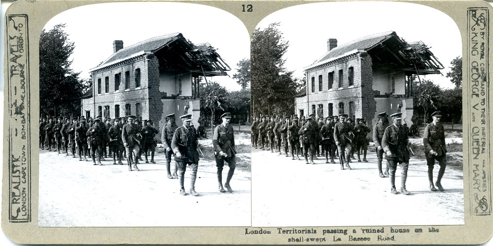 Image Id: 593 Contributor: The Jordan/Ference Collection Theatre: Western Front Subject: Behind the Lines Location: Estaires,France Regiment: 3rd Batt. London Regt TF Service Arm: Infantry Battle: Unknown Date: 1915 Combatants: British Publisher: Realistic Travels Source: British Directory: Set of 600 001-100