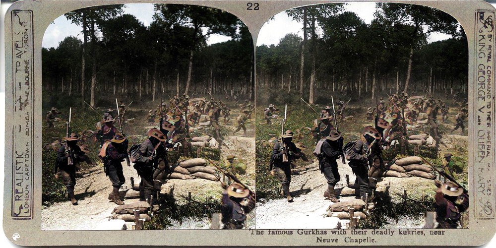 The famous Gurkhas with their deadly kukries, near Neuve Chapelle