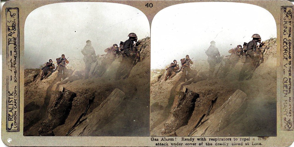 Gas Alarm! Ready with masks to repel Hun attack under cover of the deadly cloud at Loos