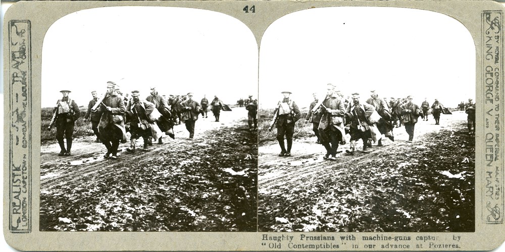 Image Id: 625 Contributor: The Jordan/Ference Collection Theatre: Western Front Subject: Prisoners Location: Pozieres,France Regiment: Unknown Service Arm: Infantry Battle: Unknown Date: 1916 Combatants: British/German Publisher: Realistic Travels Source: British Directory: Set of 600 001-100