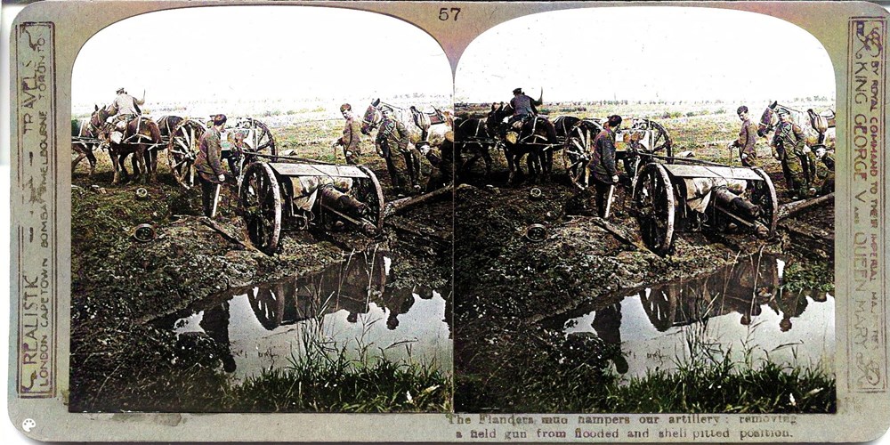 Flanders mud hampers our artillery, removing a field gun from shell-pitted & flooded position