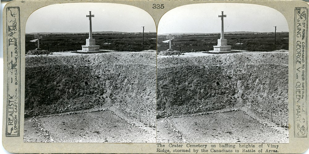 The Crater Cemetery on baffling heights of Vimy Ridge, stormed by the Canadians in Battle of Arras