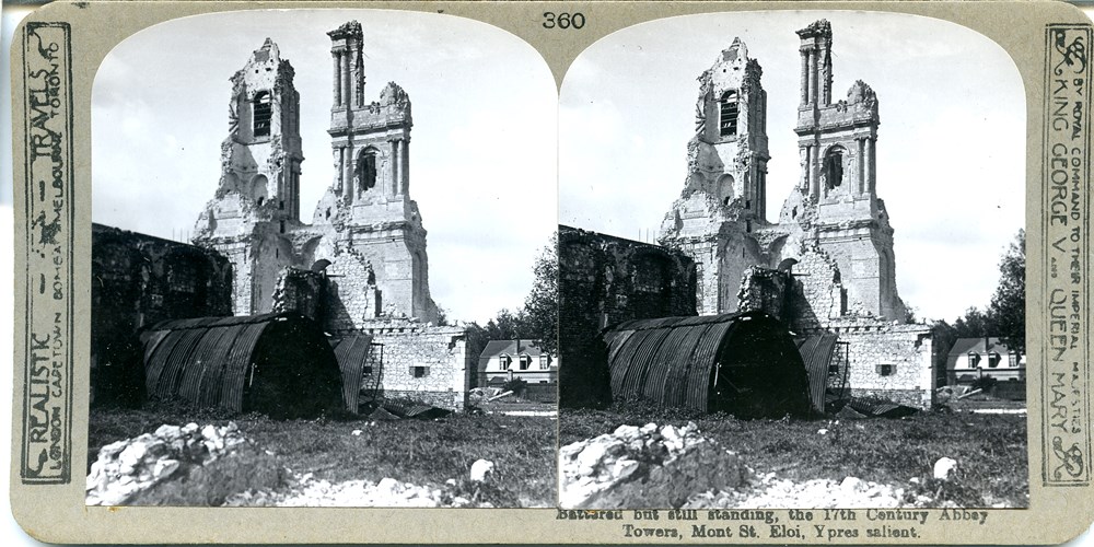 Battered but still standing, the 17th Century Abbey towers. Mont St. Eloi, Ypres salient