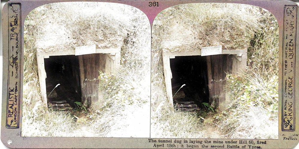 The tunnel dug in laying the mine under Hill 60, fired April 15th, it began the second Battle of Ypres