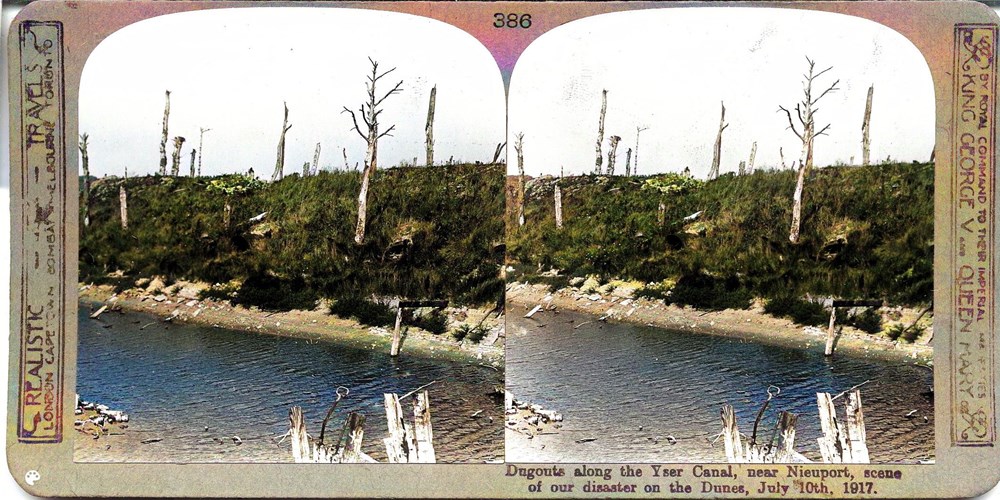 Dugouts along the Yser Canal, near Nieuport, scene of our disaster on the Dunes, July 10th, 1917
