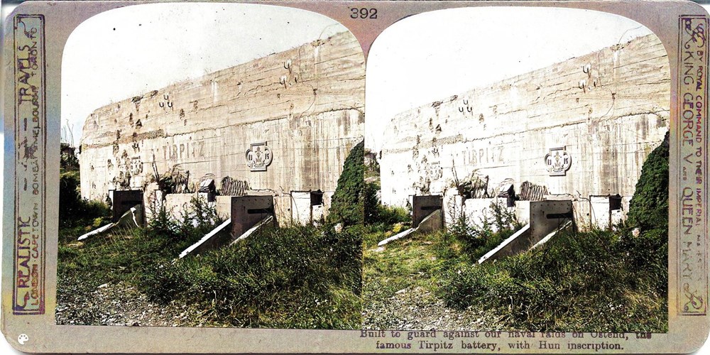 Built to guard against our naval raids on Ostend, the famous Tirpitz battery, with Hun inscription