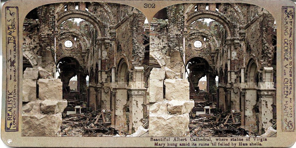 Beautiful Albert Cathedral where statue of Virgin Mary hung amidst its ruins 'til felled by Hun shells
