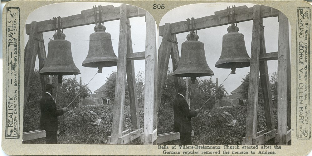Bells of Villers-Bretonneux Church erected after the German repulse removed the menace to Amiens
