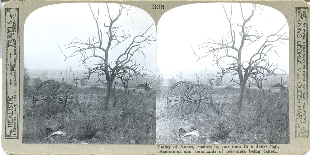 Valley of Ancre, rushed by our men in a dense fog, Beaumont and thousands of prisoners being taken