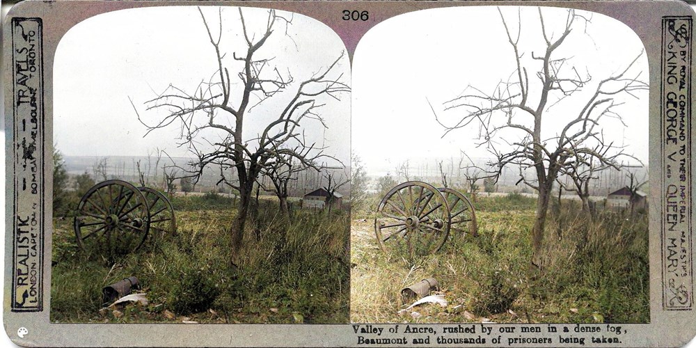 Valley of Ancre, rushed by our men in a dense fog, Beaumont and thousands of prisoners being taken