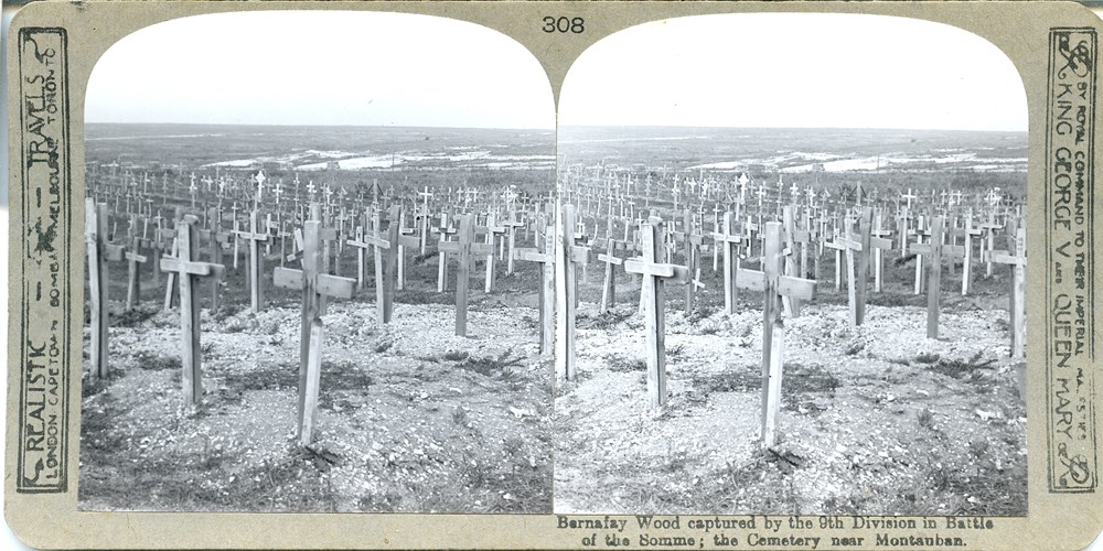 Bernafay Wood captured by the 9th Division in Battle of the Somme; the cemetery near Montauban