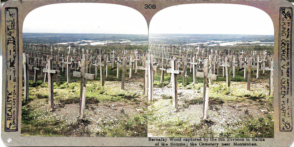 Bernafay Wood captured by the 9th Division in Battle of the Somme; the cemetery near Montauban