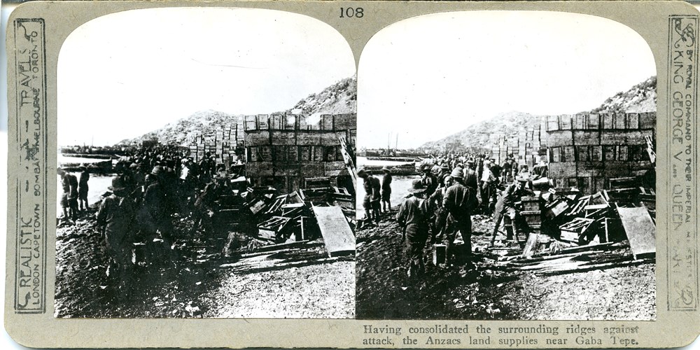 Having consolidated the surrounding ridges against attack, the Anzacs land supplies near Gaba Tepe