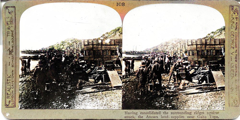 Having consolidated the surrounding ridges against attack, the Anzacs land supplies near Gaba Tepe