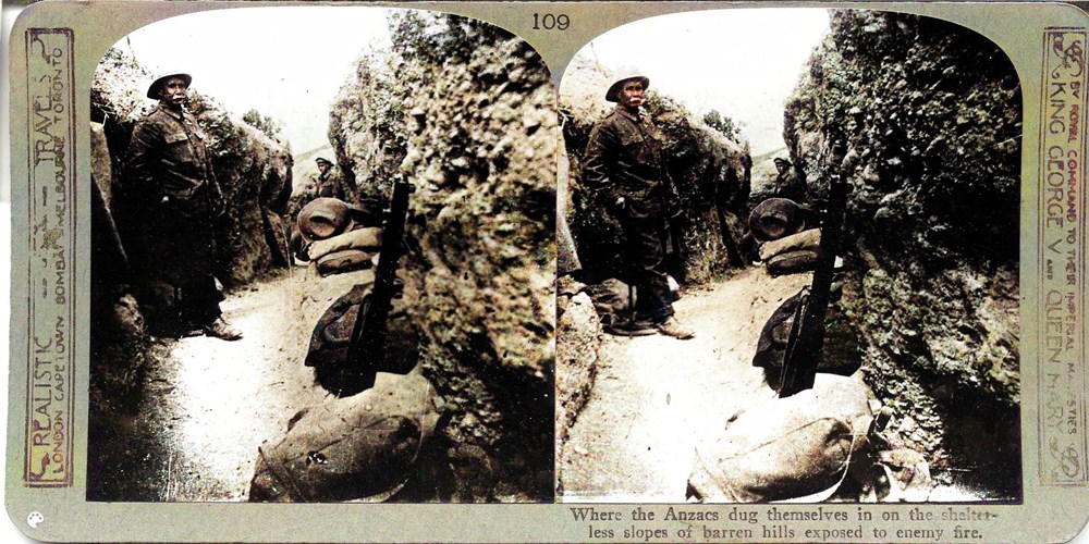 Image Id: 767 Contributor: The Jordan/Ference Collection Theatre: Gallipoli Subject: The Front Line Location: Unknown Regiment: Unknown Service Arm: Infantry Battle: Unknown Date: Unknown Combatants: Australian/New Zealand Publisher: Realistic Travels Source: British Directory: Set of 600 101-200