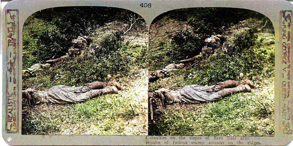 Image Id: 774 Contributor: The Jordan/Ference Collection Theatre: Gallipoli Subject: Battle Aftermath Location: Sari Bair Regiment: Unknown Service Arm: Infantry Battle: Sari Bair, Gallipoli Date: 1915 Combatants: Unknown Publisher: Realistic Travels Source: British Directory: Set of 600 401-500