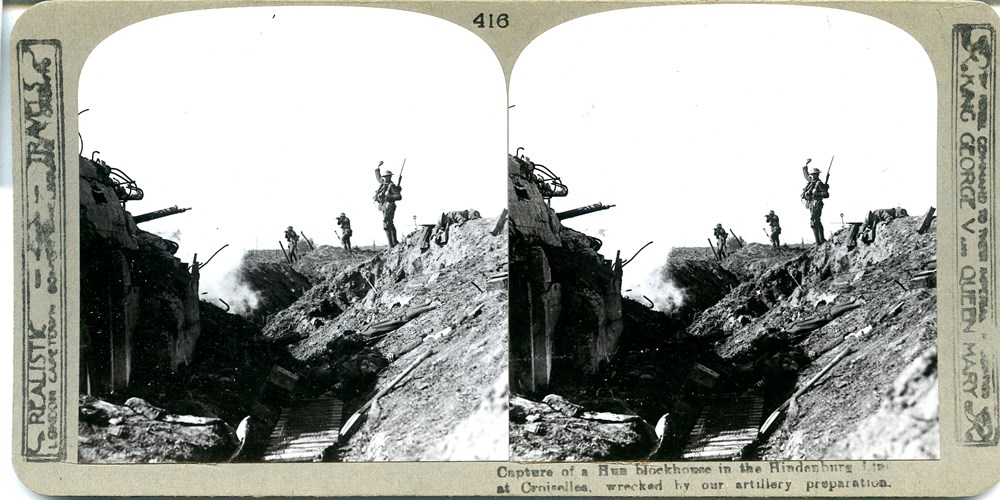 Capture of Hun blockhouse in the Hindenberg Line at Croisilles wrecked by Allied artillery