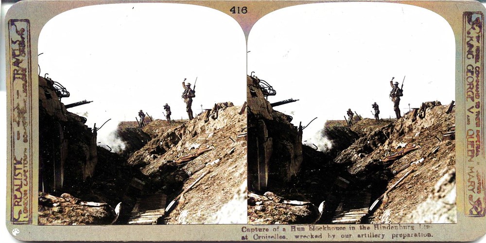 Capture of Hun blockhouse in the Hindenberg Line at Croisilles wrecked by Allied artillery