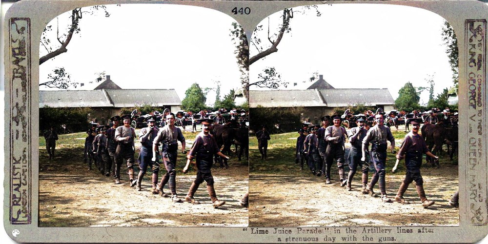 "Lime Juice Parade" in the Artillery lines after a strenuous day with the guns