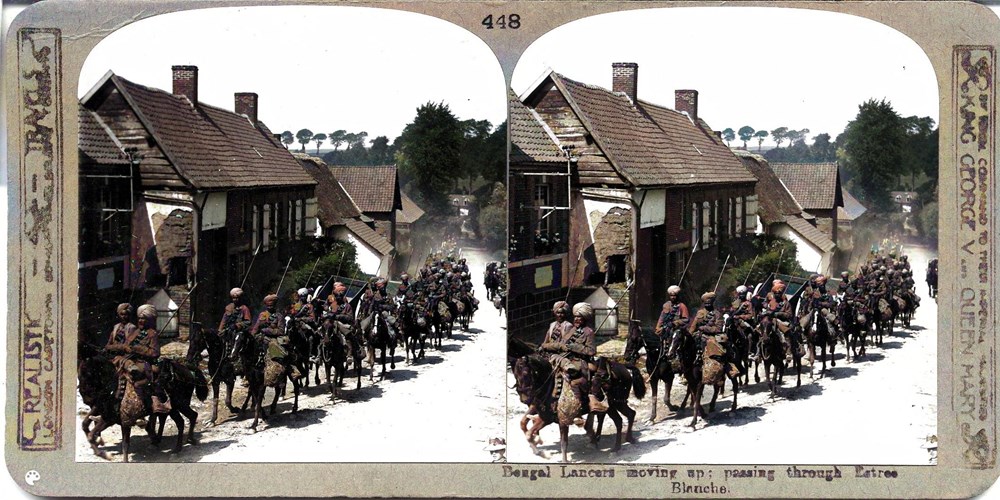 Image Id: 816 Contributor: The Jordan/Ference Collection Theatre: Western Front Subject: Behind the Lines Location: Estree-Blanche, Pas-des-Calais, France Regiment: Bengal Lancers Service Arm: Cavalry Battle: Unknown Date: Unknown Combatants: Bengal Publisher: Realistic Travels Source: British Directory: Set of 600 401-500