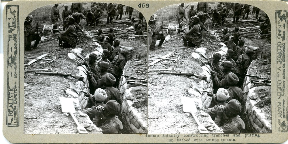 Indian Infantry constructing trenches and putting up barbed wire entanglements