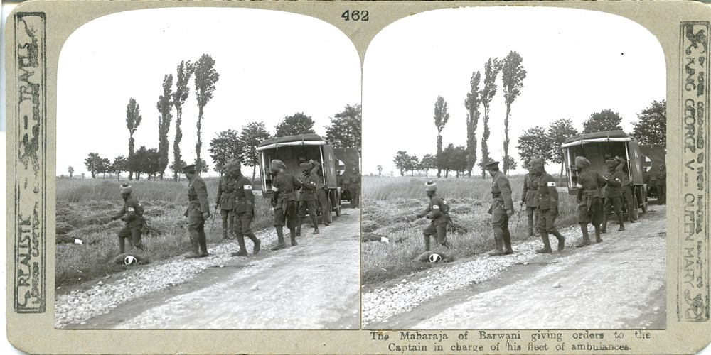 The Maharaja of Barswani giving orders to the Captain in charge of his fleet of ambulances