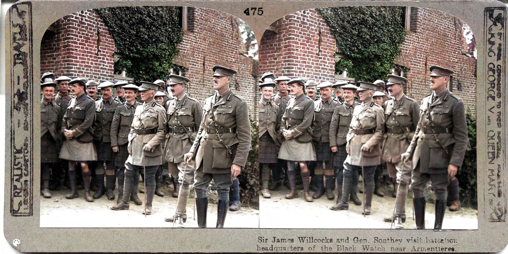 Sir James Willcocks and Gen. Southey visit battalion headquarters of the Black Watch near Armentieres