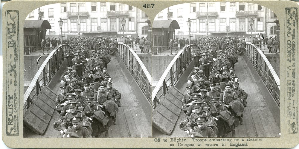 Off to Blighty. Troops embarking on a steamer at Cologne to return to England