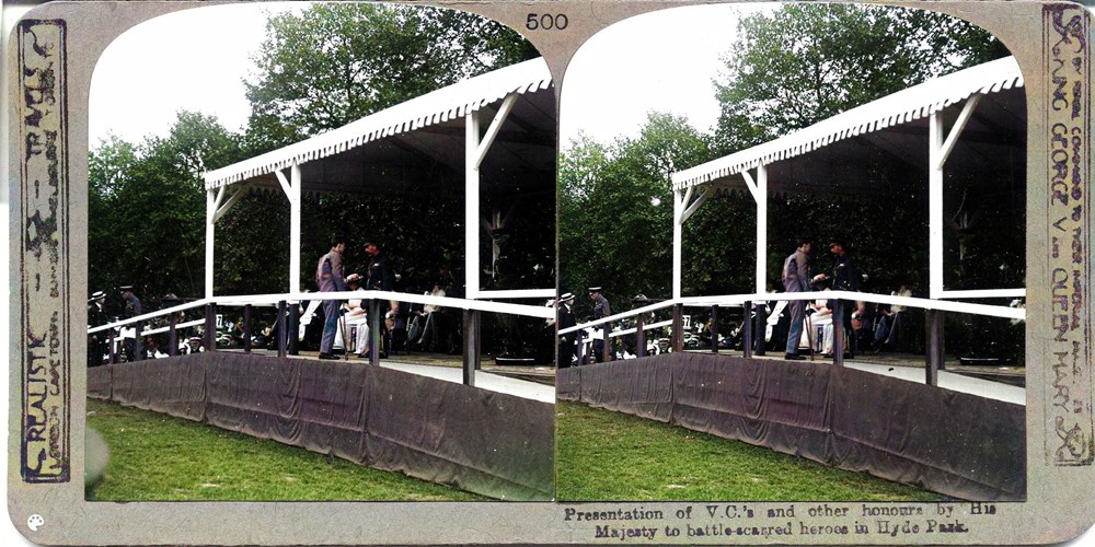 Presentation of V.C.'s and other honours by His Majesty to battle-scarred heroes in Hyde Park