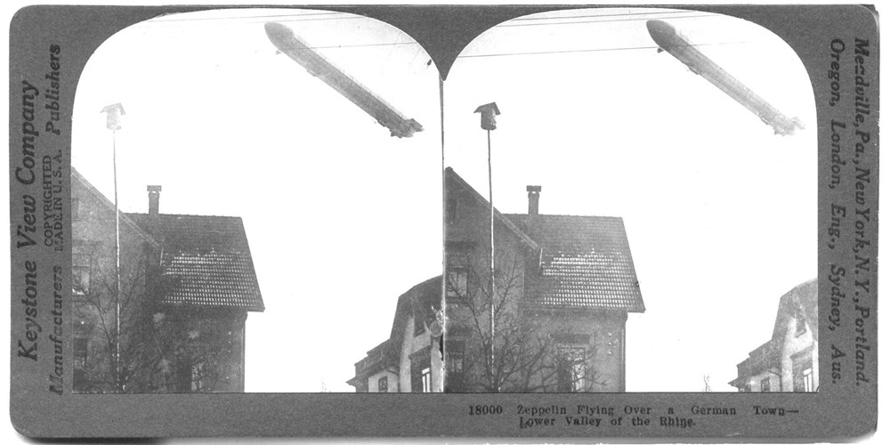 Zeppelin Flying Over a German Town--Lower Valley of the Rhine