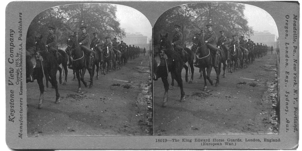 Image Id: 888 Contributor: The Jordan/Ference Collection Theatre: Home Front Subject: Parades Location: London Regiment: King Edward's Horse Guards Service Arm: Cavalry Battle: Unknown Date: Unknown Combatants: British Publisher: Keystone View Co Source: American Directory: 18000-18599