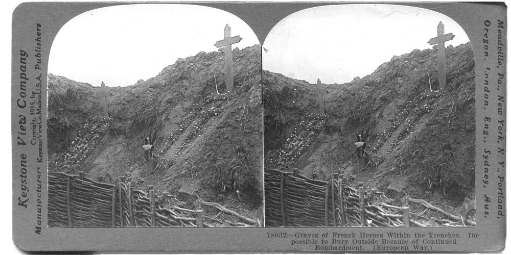 Graves of French Heroes Within the Trenches, Impossible to Bury Outside Because of Continued Bombardment (European War)