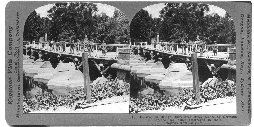 Wooden Bridge Built Over River Meuse by Germans to Replace One Allies Destroyed in their Retreat from Belgium