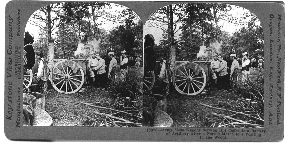 Army Mess Wagons Serving Hot Coffee to a Battery of Artillery after a Forced March to a Position in the Woods