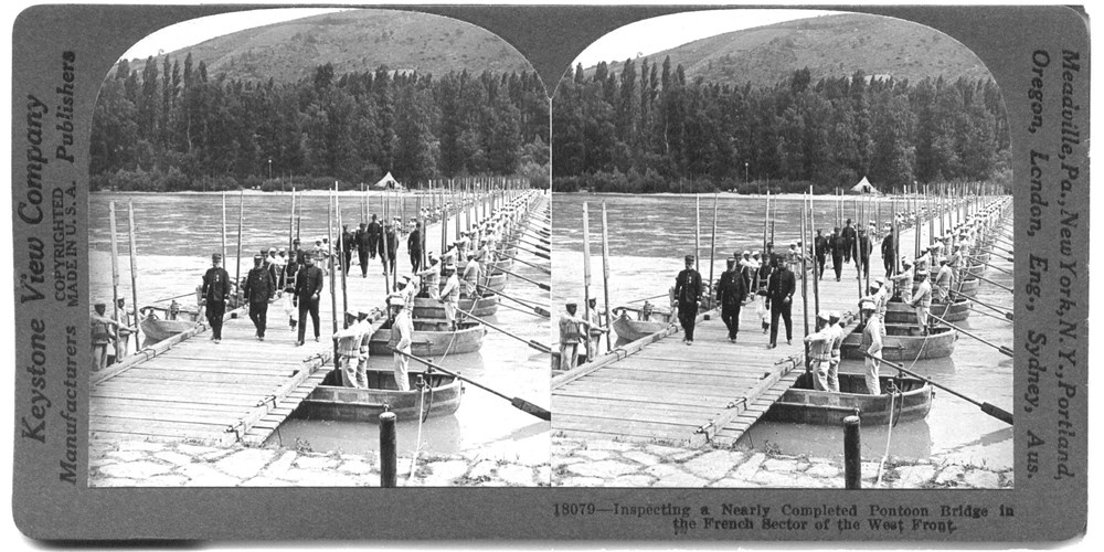 Inspecting a Nearly Completed Pontoon Bridge in the French Sector of the West Front
