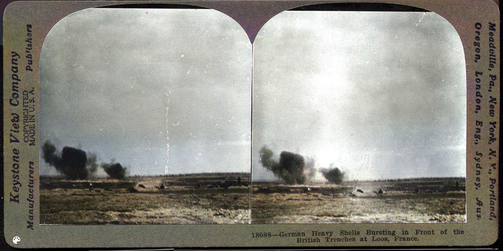 German Heavy Shells Bursting in Front of the British Trenches at Loos, France