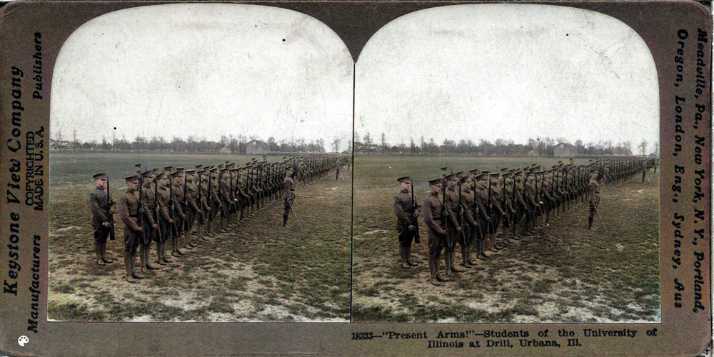 Image Id: 958 Contributor: The Jordan/Ference Collection Theatre: Home Front Subject: Training Location: Illinois, USA Regiment: Unknown Service Arm: Unknown Battle: Unknown Date: Unknown Combatants: American Publisher: Keystone View Co Source: American Directory: 18000-18599