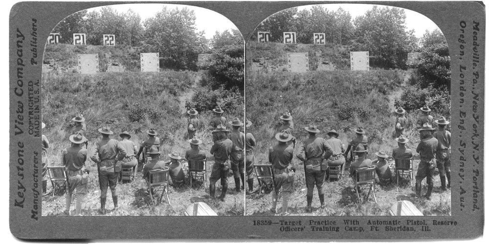 Target Practice With Automatic Pistol. Reserve Officers' Training Camp, Ft. Sheridan, Ill.