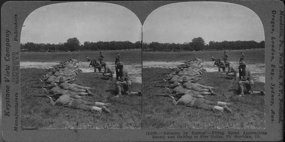 Image Id: 970 Contributor: The Jordan/Ference Collection Theatre: Home Front Subject: Training Location: Fort Sheridan, Illinois, USA Regiment: Unknown Service Arm: Unknown Battle: Unknown Date: Unknown Combatants: American Publisher: Keystone View Co Source: American Directory: 18000-18599