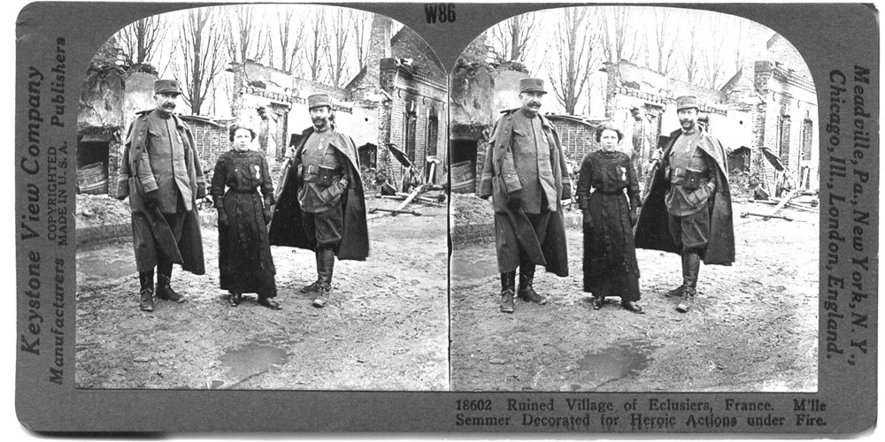 Ruined Village of Eclusiers, France. M'lle Semmer Decorated for Heroic Actions under Fire