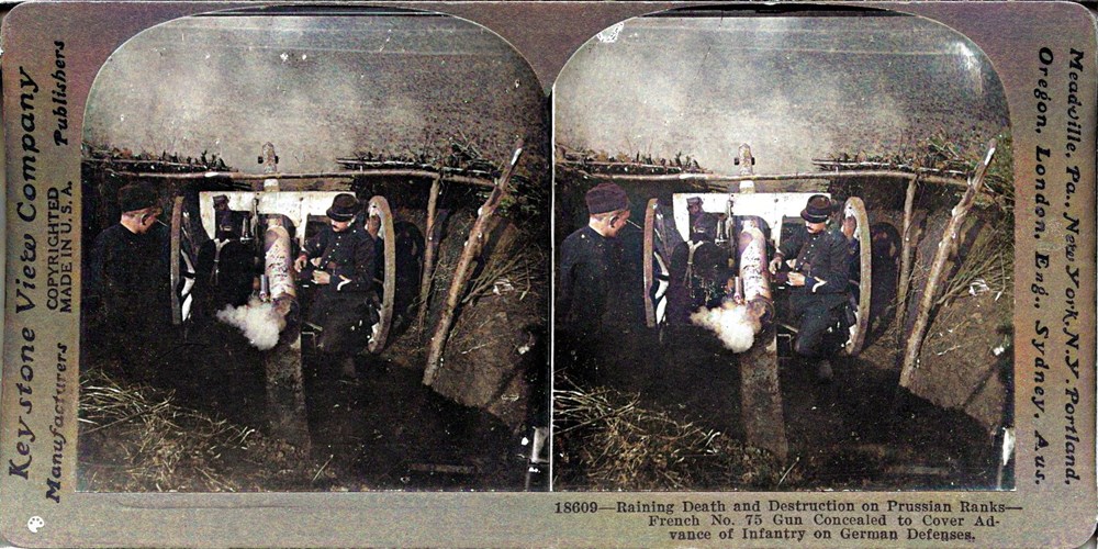 Raining Death and Destruction on Prussian Ranks - French No. 75 Gun Concealed to Cover Advance of Infantry on German Defenses