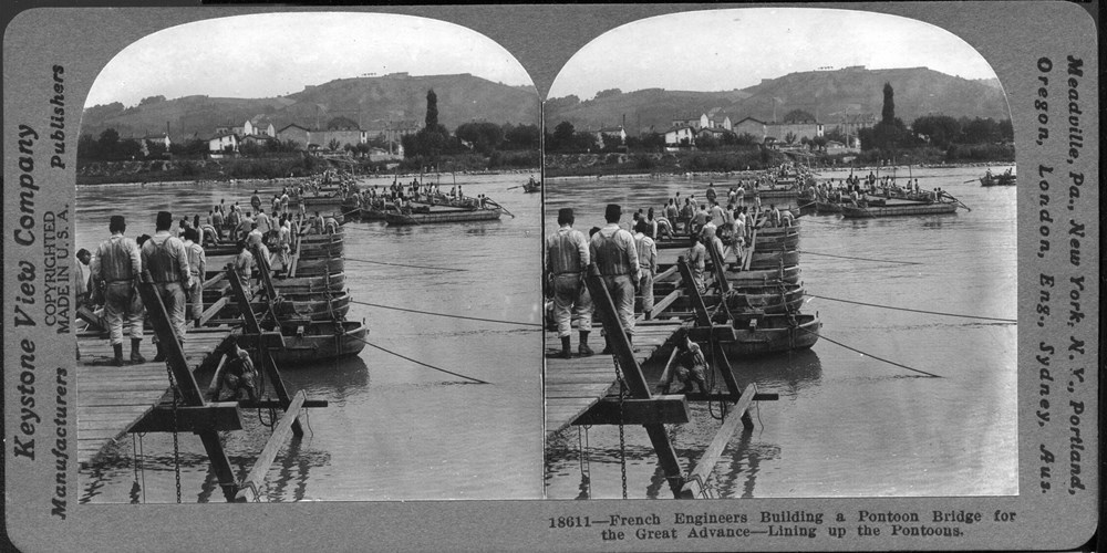 French Engineers Building a Pontoon Bridge for the Great Advance - Lining up the Pontoons