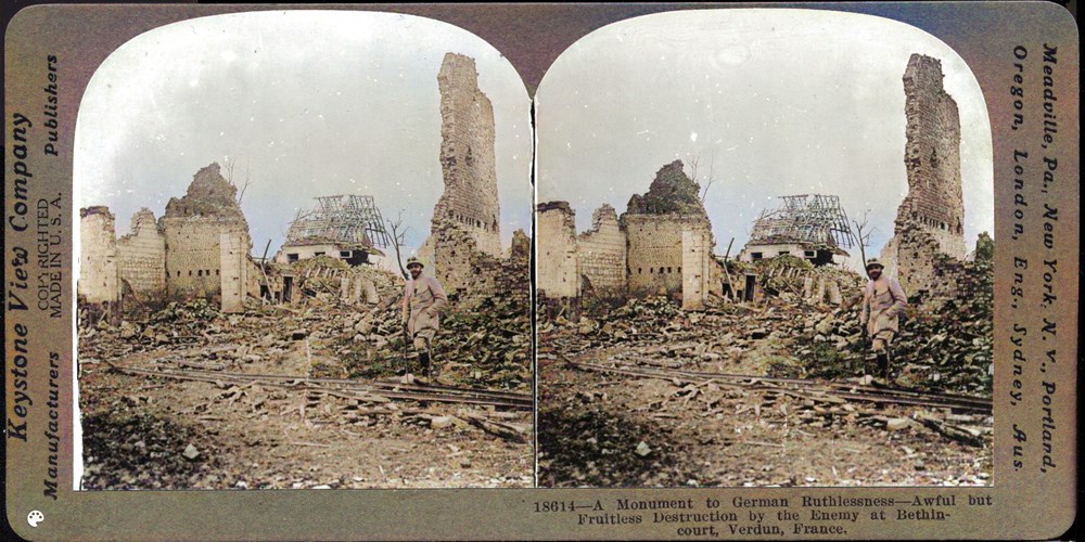 Image Id: 985 Contributor: The Jordan/Ference Collection Theatre: Western Front Subject: Battle Aftermath Location: Bethincourt, Verdun, France Regiment: Unknown Service Arm: Unknown Battle: Unknown Date: Unknown Combatants: Unknown Publisher: Keystone View Co Source: American Directory: 18600-18699
